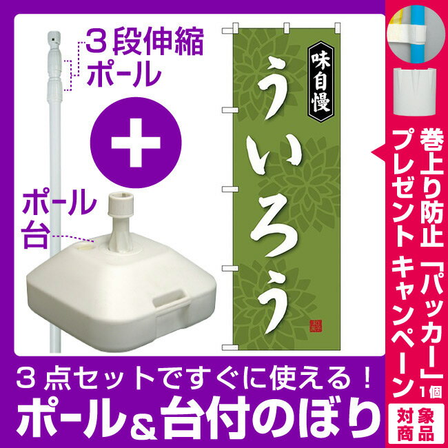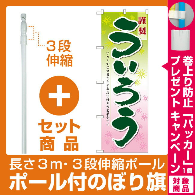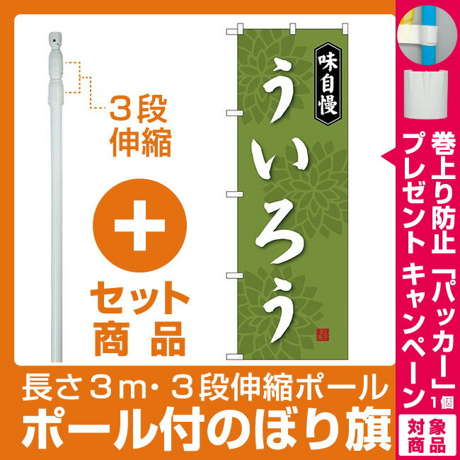 【セット商品】3m・3段伸縮のぼりポール(竿)付 のぼり旗 ういろう 味自慢 (SNB-4072)